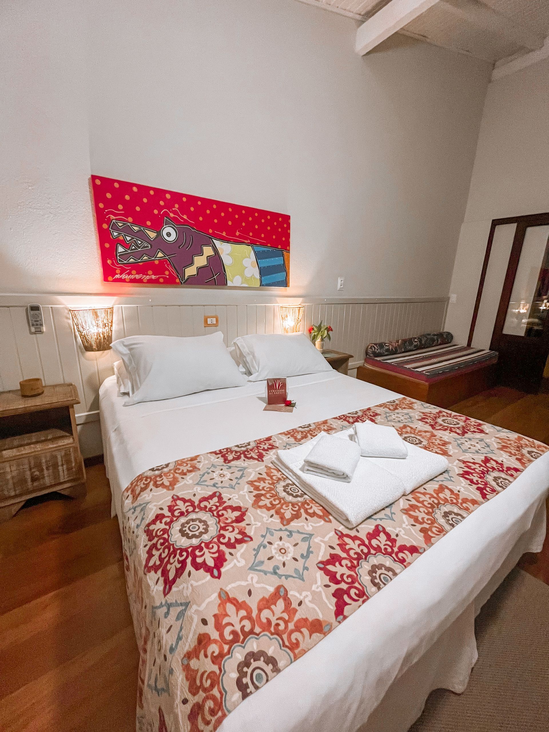 Located on the upper floor, this splendid room has double height ceilings and cross ventilation. With 25m², queen size box bed, minibar, split air conditioning, hardwood floors, reclaimed wood furniture and cable TV – 32″ flat screen.