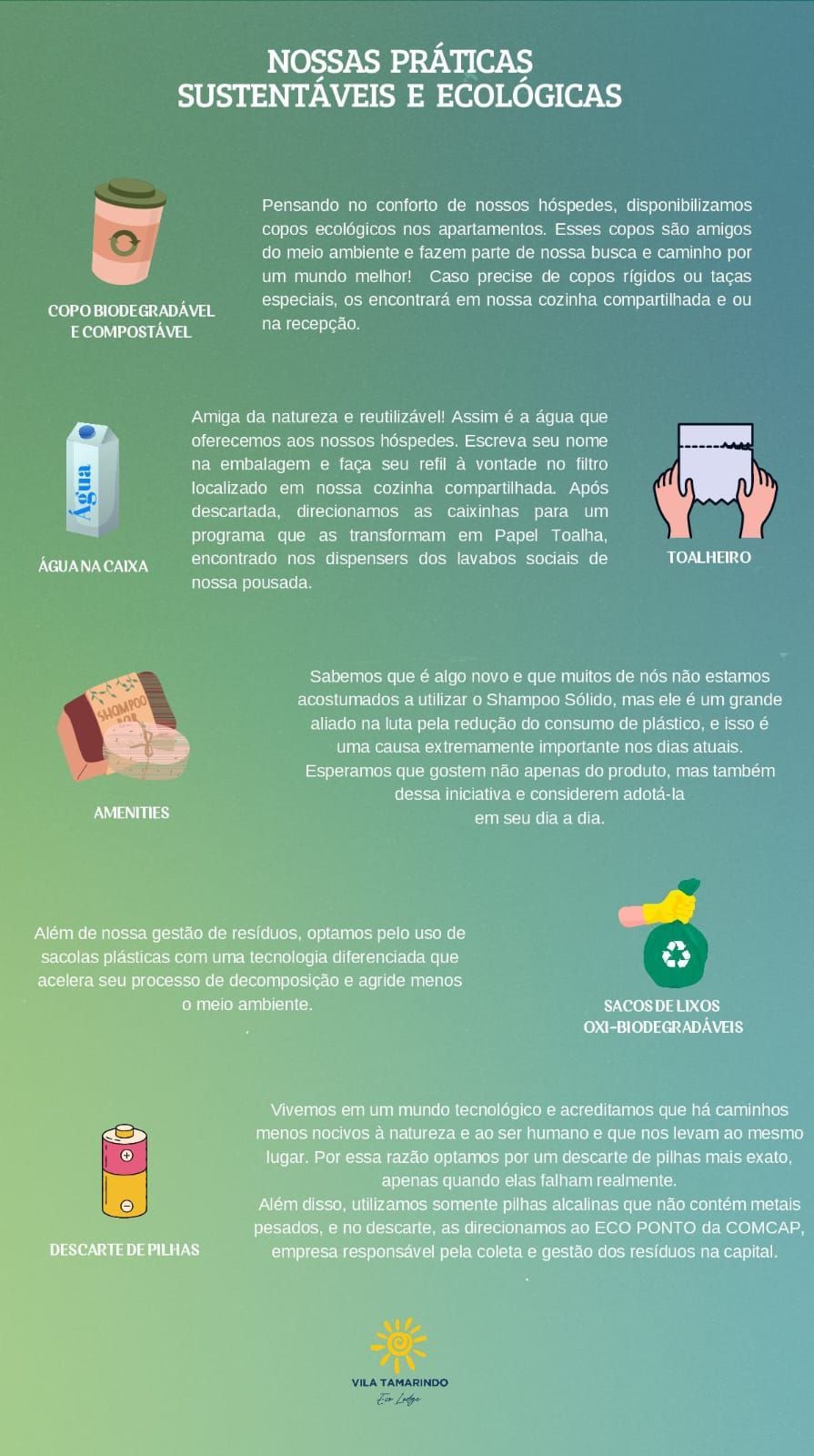 The Empreendimento Pousada Vila Tamarindo Eco Lodge, located in the neighborhood of Campeche, municipality of Florianópolis, state of Santa Catarina, Brazil, a small coastal leisure accommodation facility, facing Campeche beach, is committed to the Principles of Sustainable Tourism and establishes its sustainability policy, aiming to promote the continuous improvement of its operations in order to: